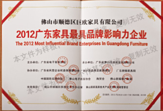 2012年榮獲“廣東家具(jù)最具創新企業”、“廣東家具最具(jù)影響力企業”